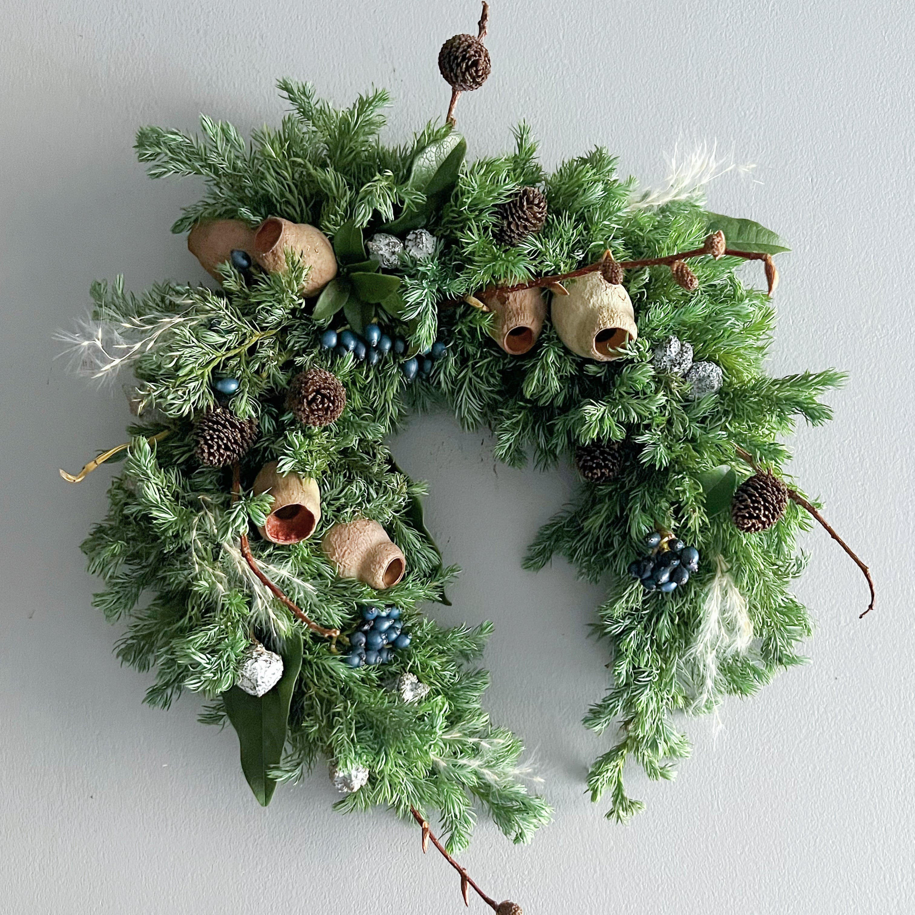 さらに、素材でクリスマスのシンボルでもあるモミの木を使わず、その他の針葉樹のみでご用意すると、よりオールシーズン飾っていただけるような雰囲気になるかと思います。